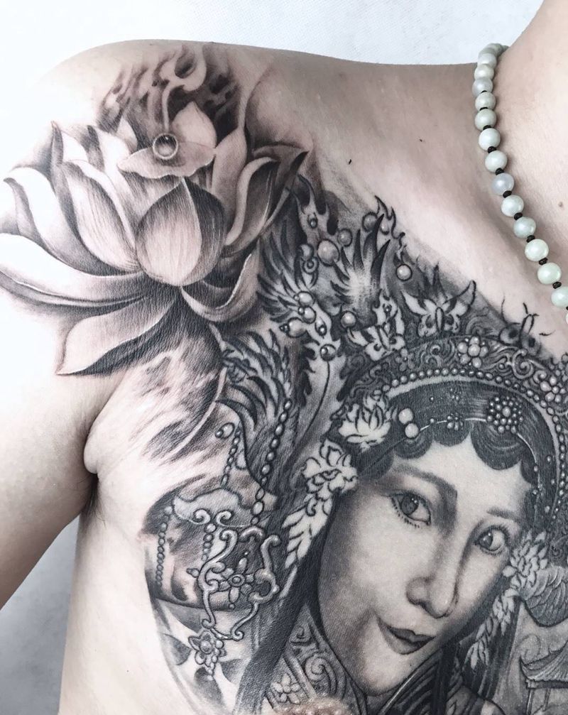 • 女性大花胸纹身_43张霸气漂亮的女性大花胸纹身图案作品