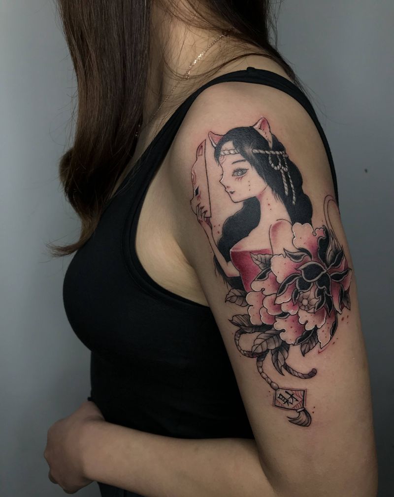 当前位置: 首页 >山东省济宁市纹身店-禅心刺青艺术空间纹身图案>狐狸纹身图片_手臂New School狐狸面具纹身图案