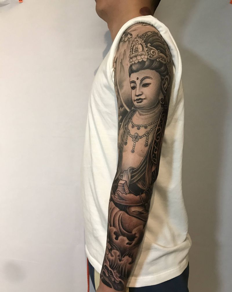 当前位置: 首页 >山东省泰安市纹身店-山东泰安纹武堂刺青纹身图案>新传统 观音纹身图片_手臂新传统纹身图案