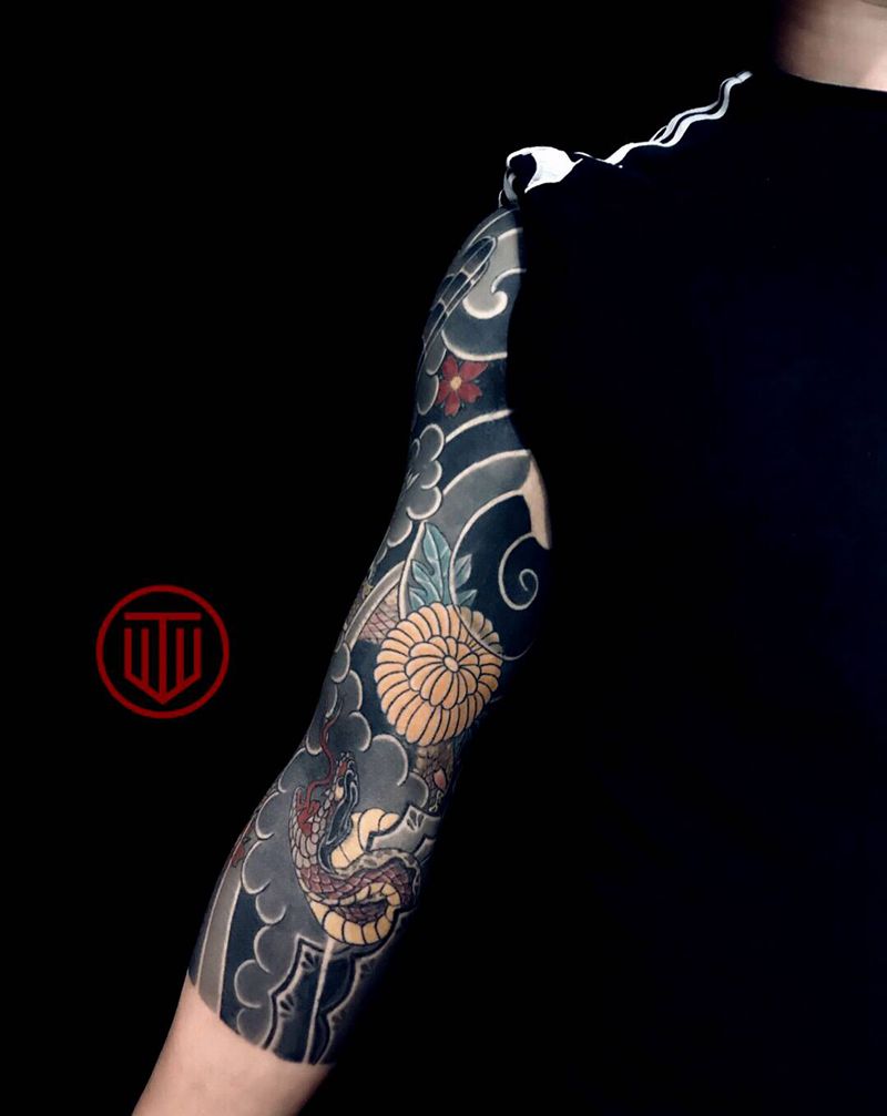 • T网红王老大花腿龙纹身图片_腿部新传统纹身图案