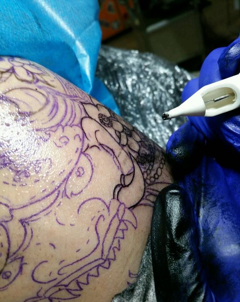 • T网红王老大花腿龙纹身图片_腿部新传统纹身图案
