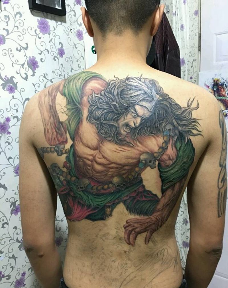 • H霸气全彩满背钟馗纹身图案