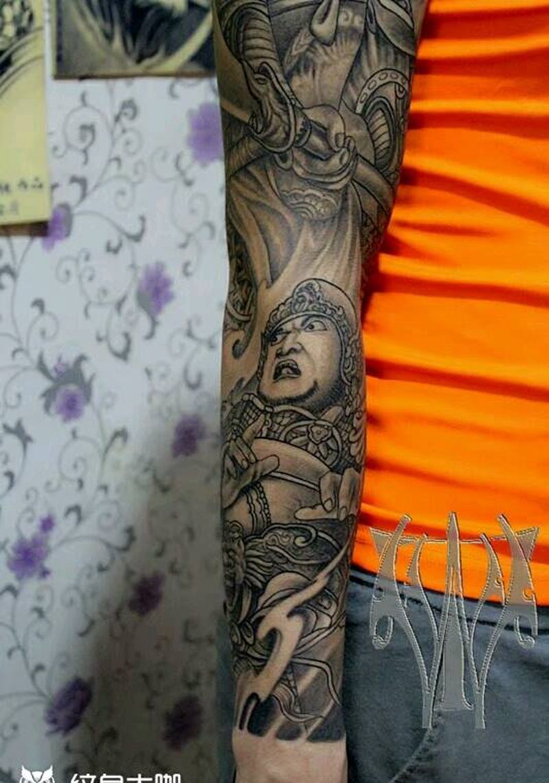 当前位置: 首页 >山东省泰安市纹身店-山东泰安纹武堂刺青纹身图案>关公斩敌 小臂纹身图片