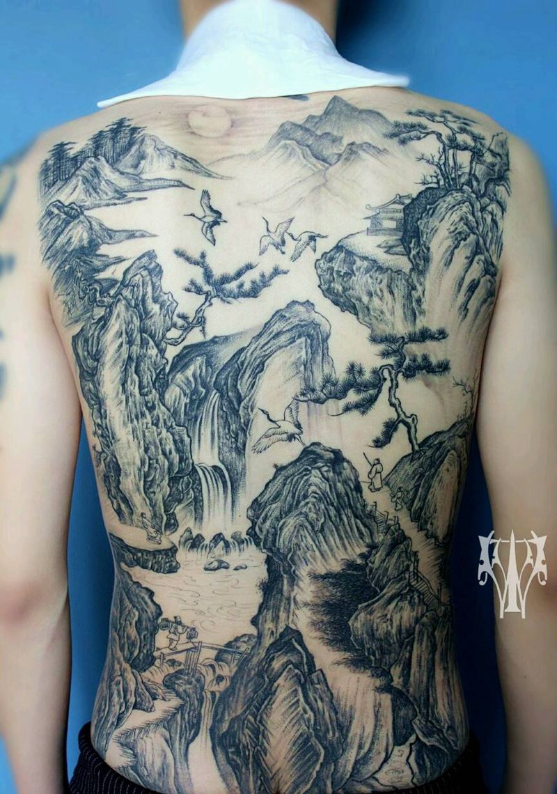 当前位置: 首页 >山东省泰安市纹身店-山东泰安纹武堂刺青纹身图案>满背山水纹身图片