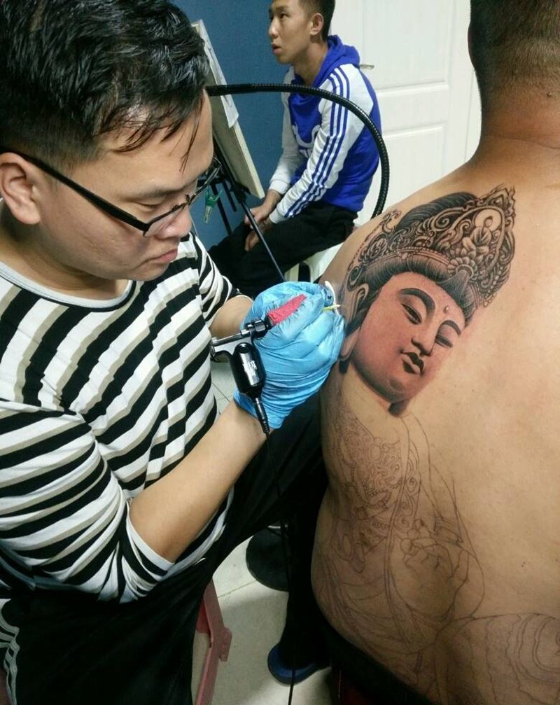 当前位置: 首页 >山东省泰安市纹身店-山东泰安纹武堂刺青纹身图案>菩萨 工作照纹身图片