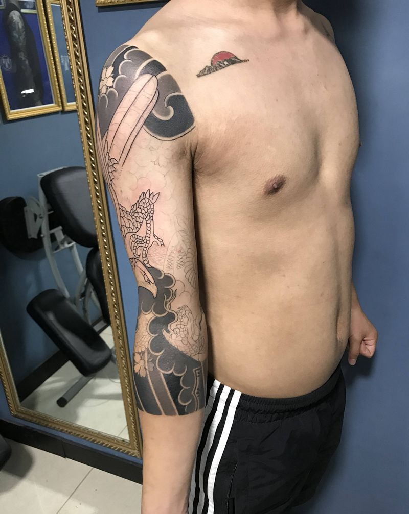 当前位置: 首页 >山东省泰安市纹身店-山东泰安纹武堂刺青纹身图案>老传统完成30%纹身图片_老传统纹身图案