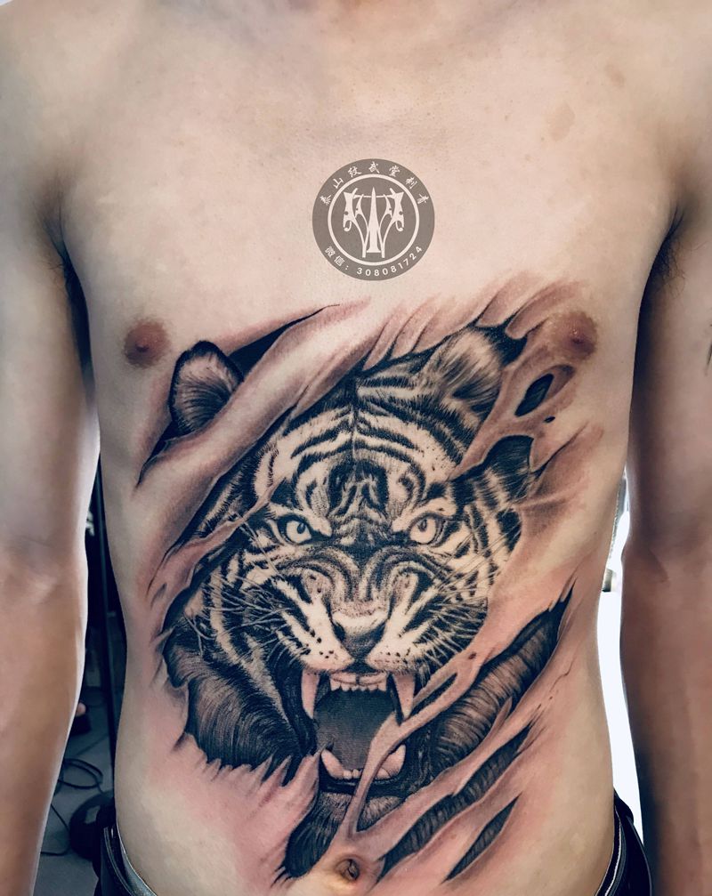 当前位置: 首页 >山东省泰安市纹身店-山东泰安纹武堂刺青纹身图案>老虎 恢复后上彩色纹身图片_腹部欧美写实老虎 虎头纹身图案