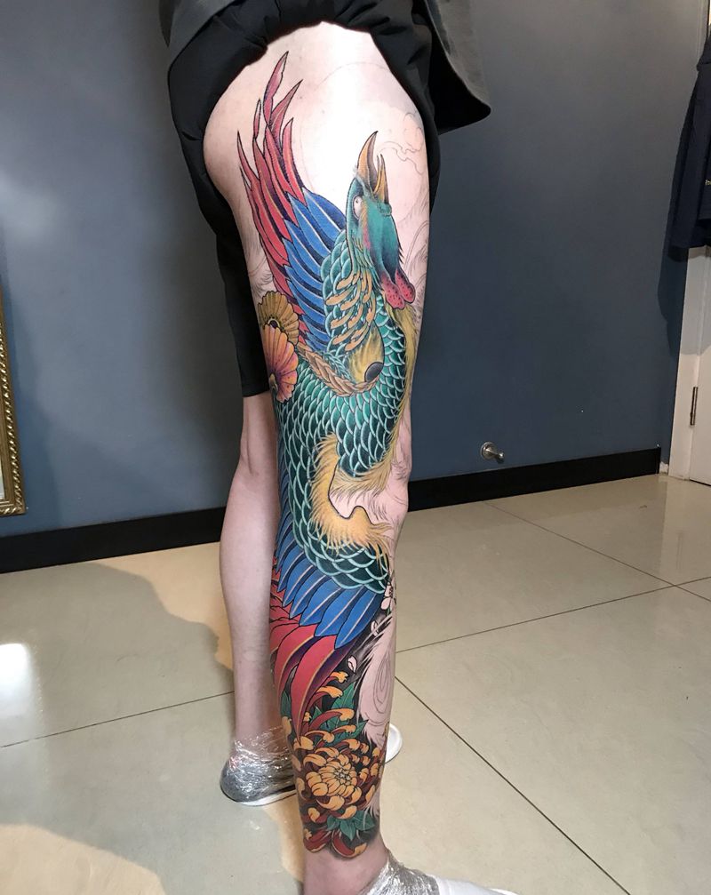 • T网红王老大花腿龙纹身图片_腿部新传统纹身图案