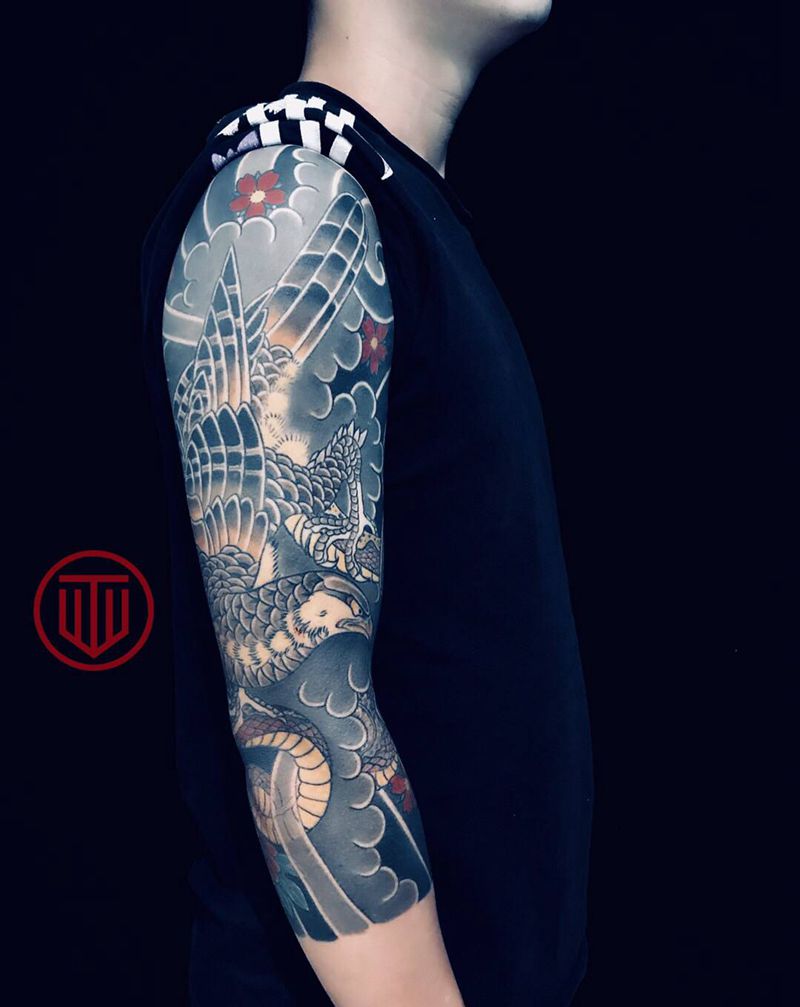 当前位置: 首页 >山东省泰安市纹身店-山东泰安纹武堂刺青纹身图案>七分袖老传统纹身图片_手臂老传统纹身图案