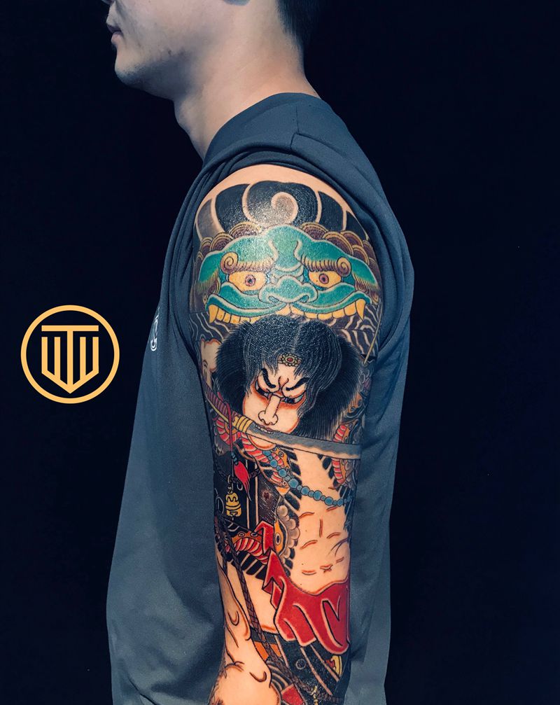 当前位置: 首页 >山东省泰安市纹身店-山东泰安纹武堂刺青纹身图案>张顺 完成60%纹身图片_手臂老传统张顺破水门纹身图案