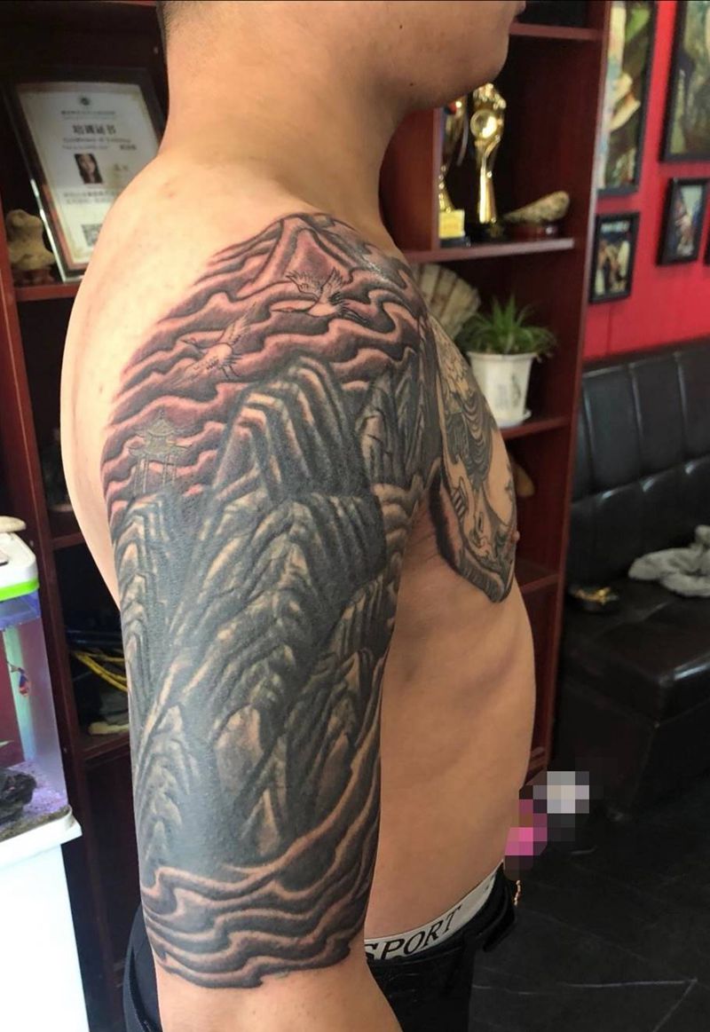 黑灰满背纹身图案