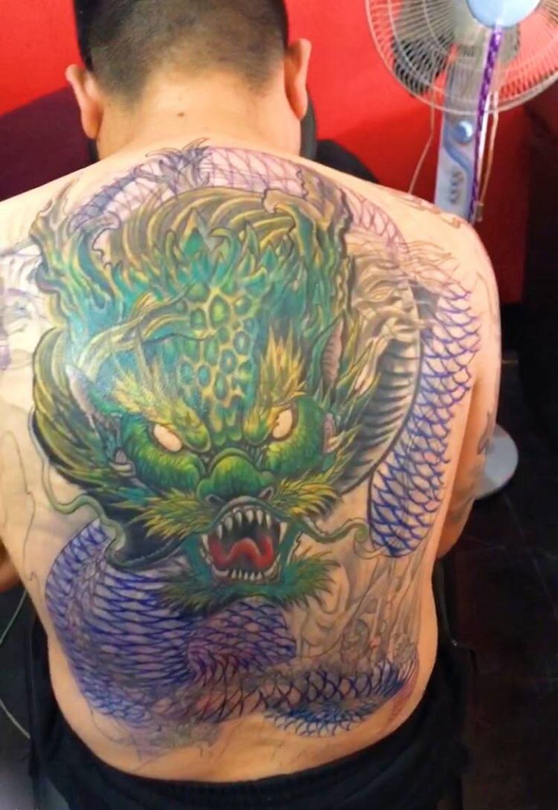 黑灰满背纹身图案