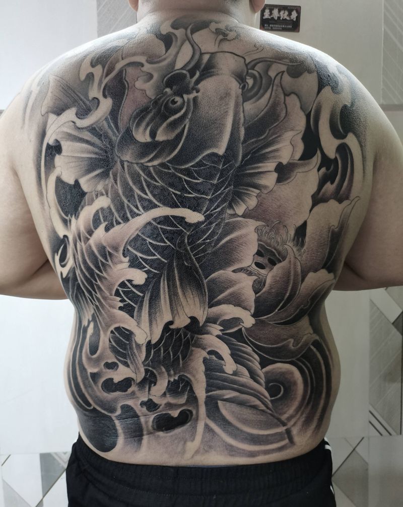 当前位置: 首页 >山东省济宁市纹身店-李先森刺青处纹身图案>鲤鱼纹身图片_背部新传统纹身图案