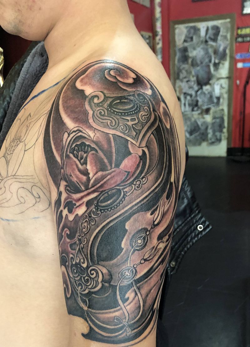一组15张莲花纹身手
