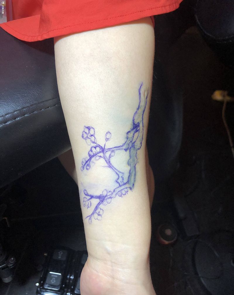 疤痕遮盖梅花《旺师傅作品》纹身图片_手臂手部水墨遮盖梅花纹身图案