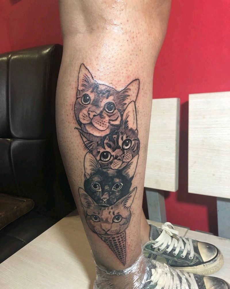 冰淇淋猫咪(旺师傅作品)纹身图片_腿部脚部欧美写实猫可爱纹身图案