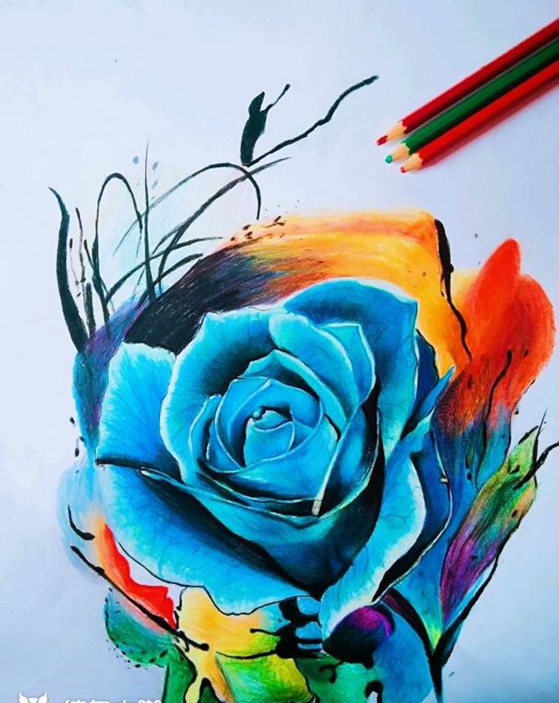 • 手背潮流时尚的玫瑰花眼睛纹身图案