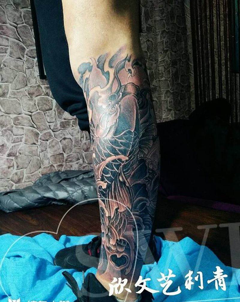 当前位置: 首页 >山东省泰安市纹身店-金门刺青(原欣文艺刺青)纹身图案>鲤鱼包小腿,外侧完成……下次继纹身图片