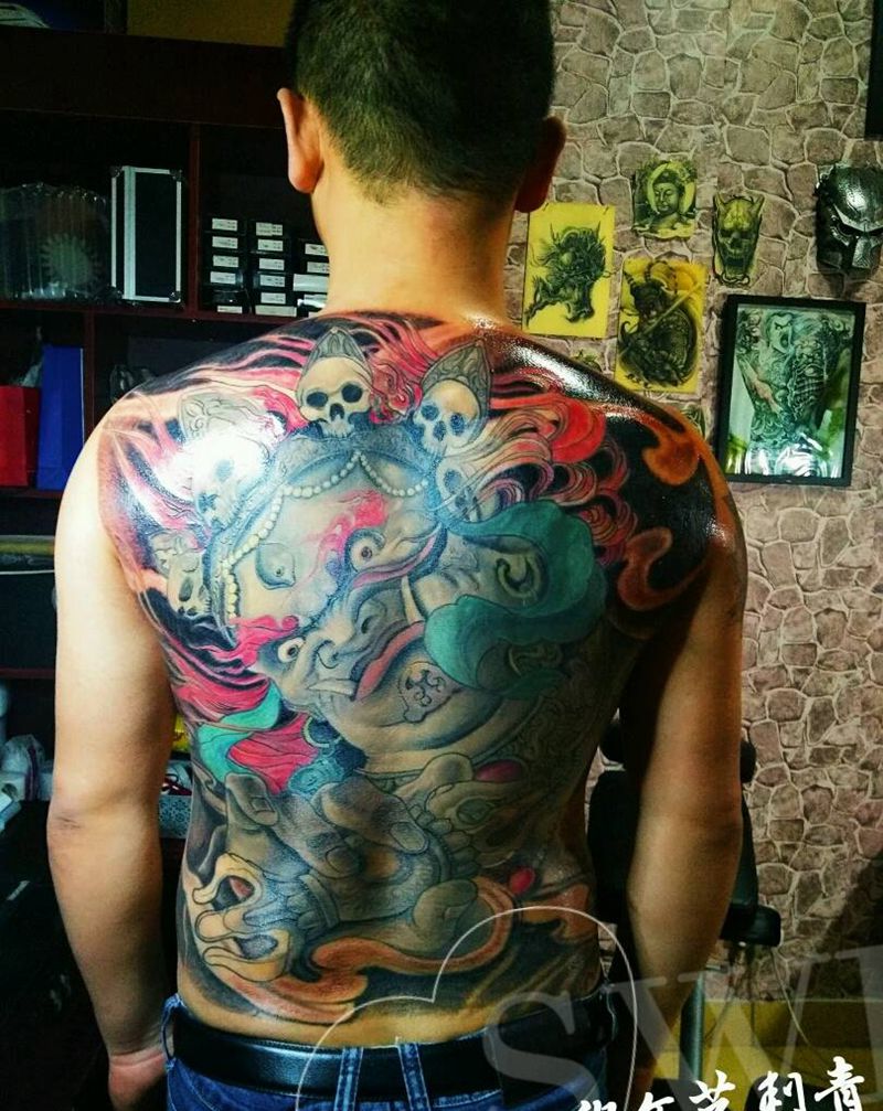 当前位置: 首页 >山东省泰安市纹身店-金门刺青(原欣文艺刺青)纹身图案>满背(大黑天)纹身图片_背部传统人物鬼神成品纹身图案