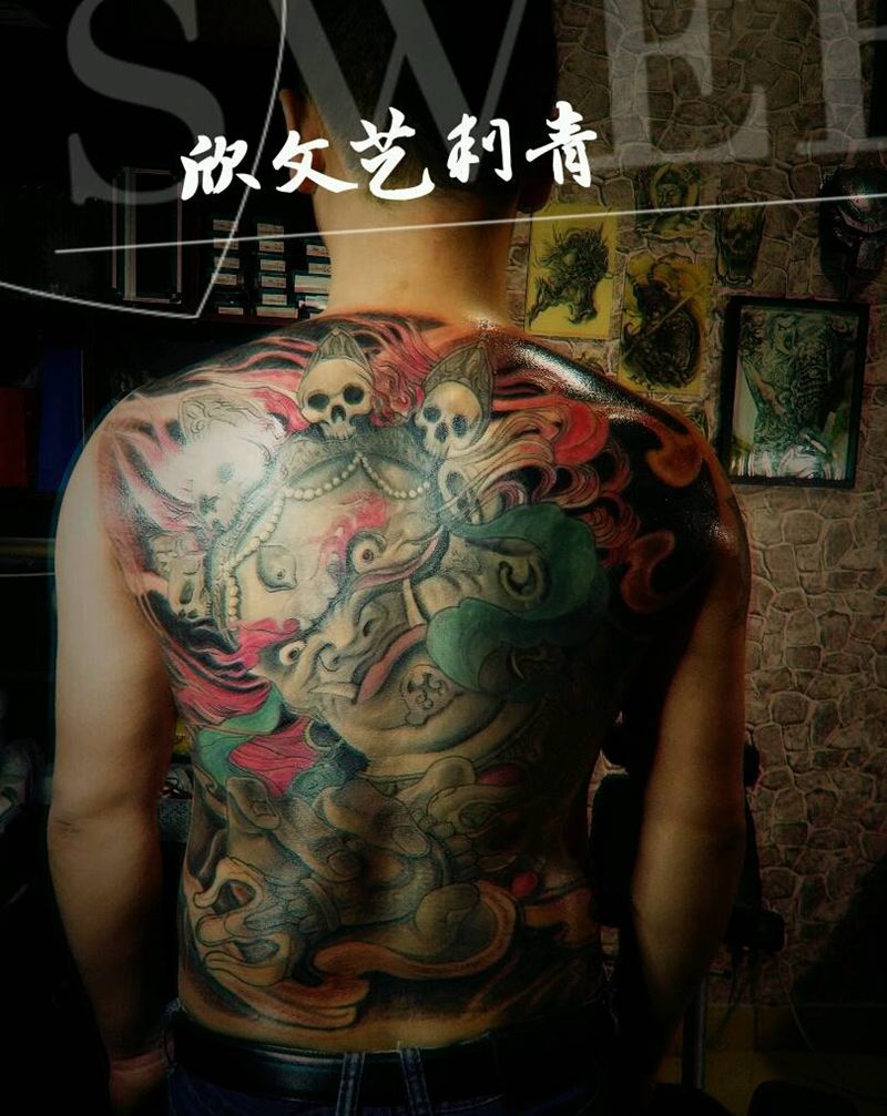 当前位置: 首页 >山东省泰安市纹身店-金门刺青(原欣文艺刺青)纹身图案>满背(大黑天)纹身图片_背部传统人物鬼神成品纹身图案