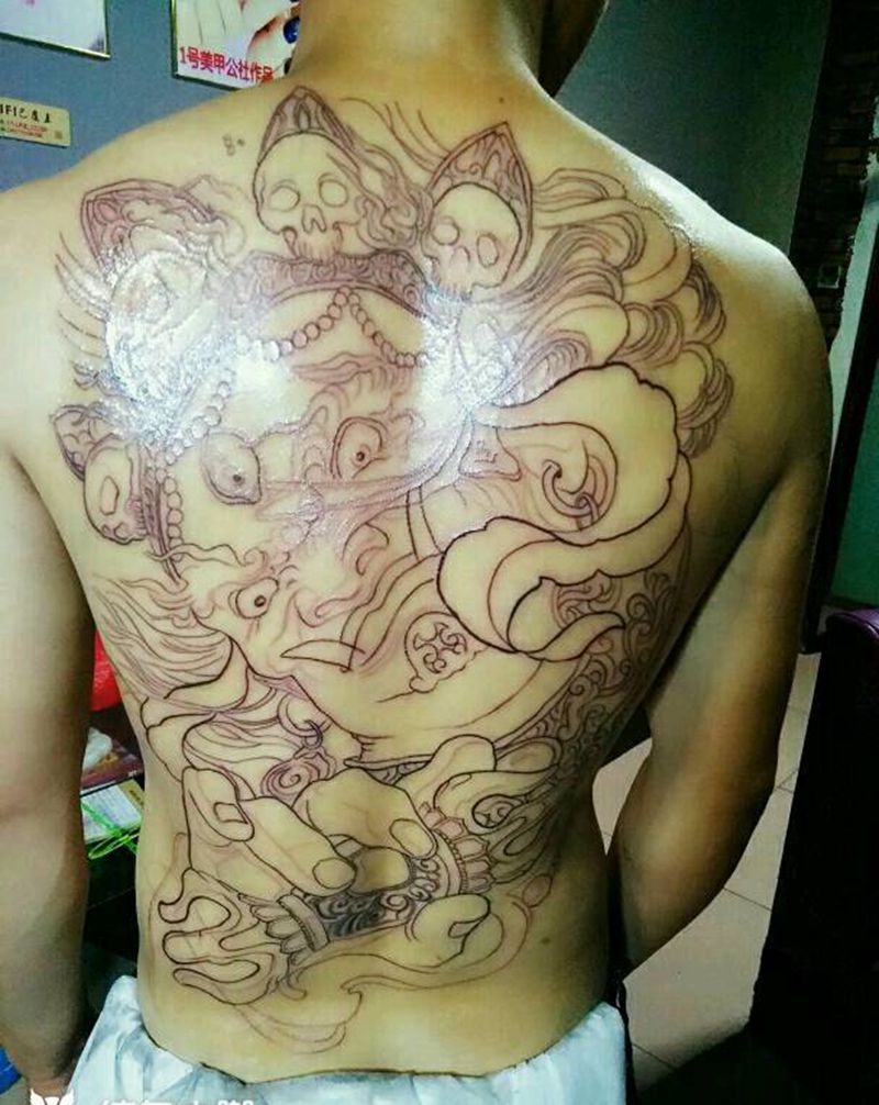 当前位置: 首页 >山东省泰安市纹身店-金门刺青(原欣文艺刺青)纹身图案>大黑天满背(欣师傅作品)纹身图片