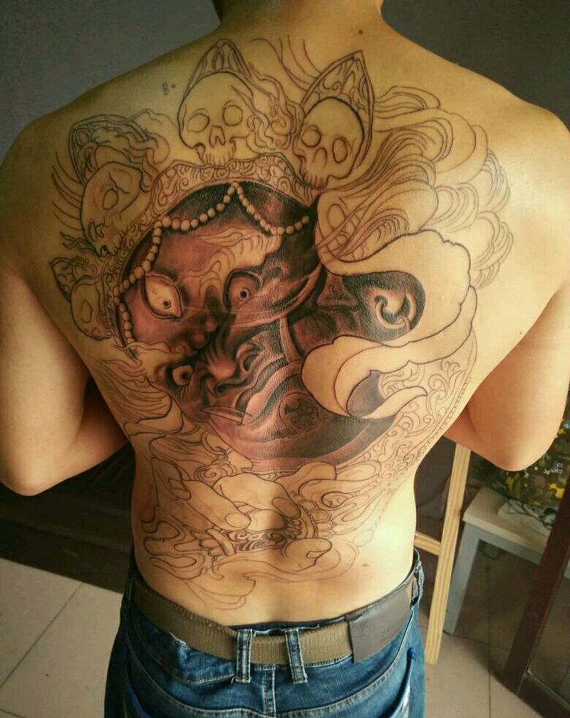 当前位置: 首页 >山东省泰安市纹身店-金门刺青(原欣文艺刺青)纹身图案>大黑天满背(欣师傅作品)纹身图片