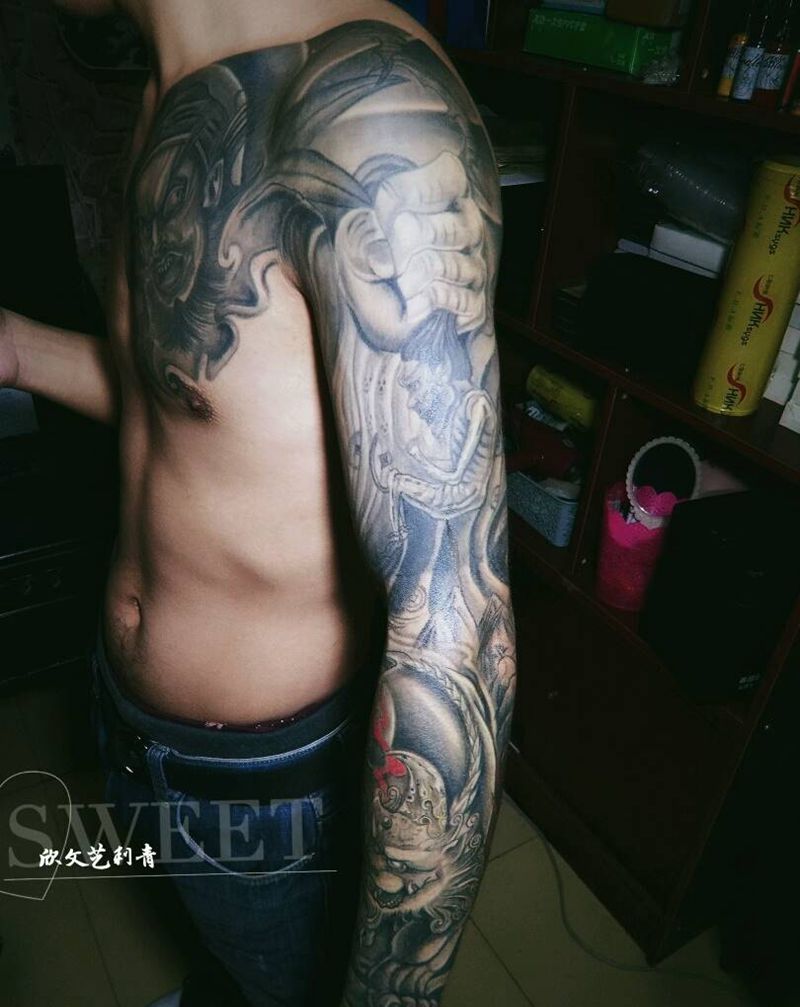 当前位置: 首页 >山东省泰安市纹身店-金门刺青(原欣文艺刺青)纹身图案>钟馗伏魔招财半甲纹身图片