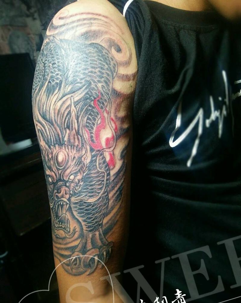 当前位置: 首页 >山东省泰安市纹身店-金门刺青(原欣文艺刺青)纹身图案>大臂麒麟(遮盖)《旺哥作品》纹身图片
