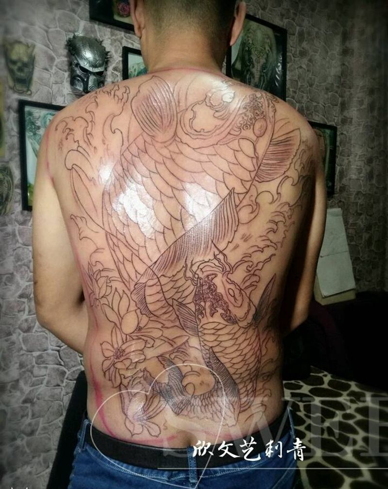 当前位置: 首页 >山东省泰安市纹身店-金门刺青(原欣文艺刺青)纹身图案>双鱼满背未完成《旺师傅作品》纹身图片_背部老传统新传统鱼纹身图案