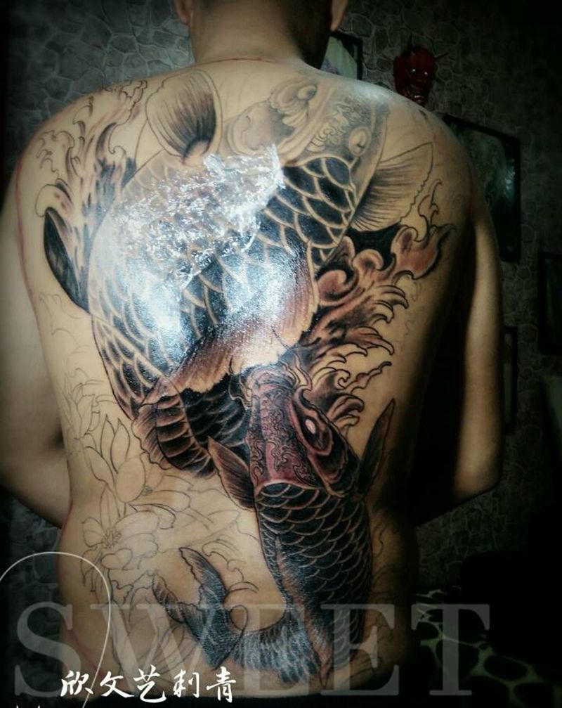 当前位置: 首页 >山东省泰安市纹身店-金门刺青(原欣文艺刺青)纹身图案>双鱼满背未完成《旺师傅作品》纹身图片_背部老传统新传统鱼纹身图案