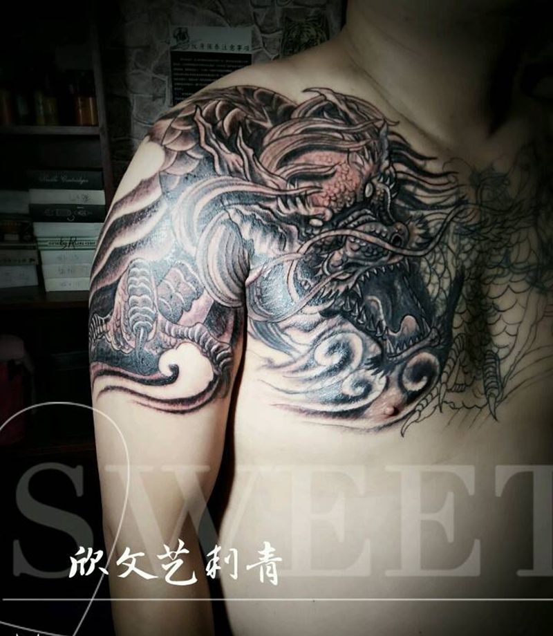 • 纹身吧推荐的披肩图腾半胛纹身图案作品展示