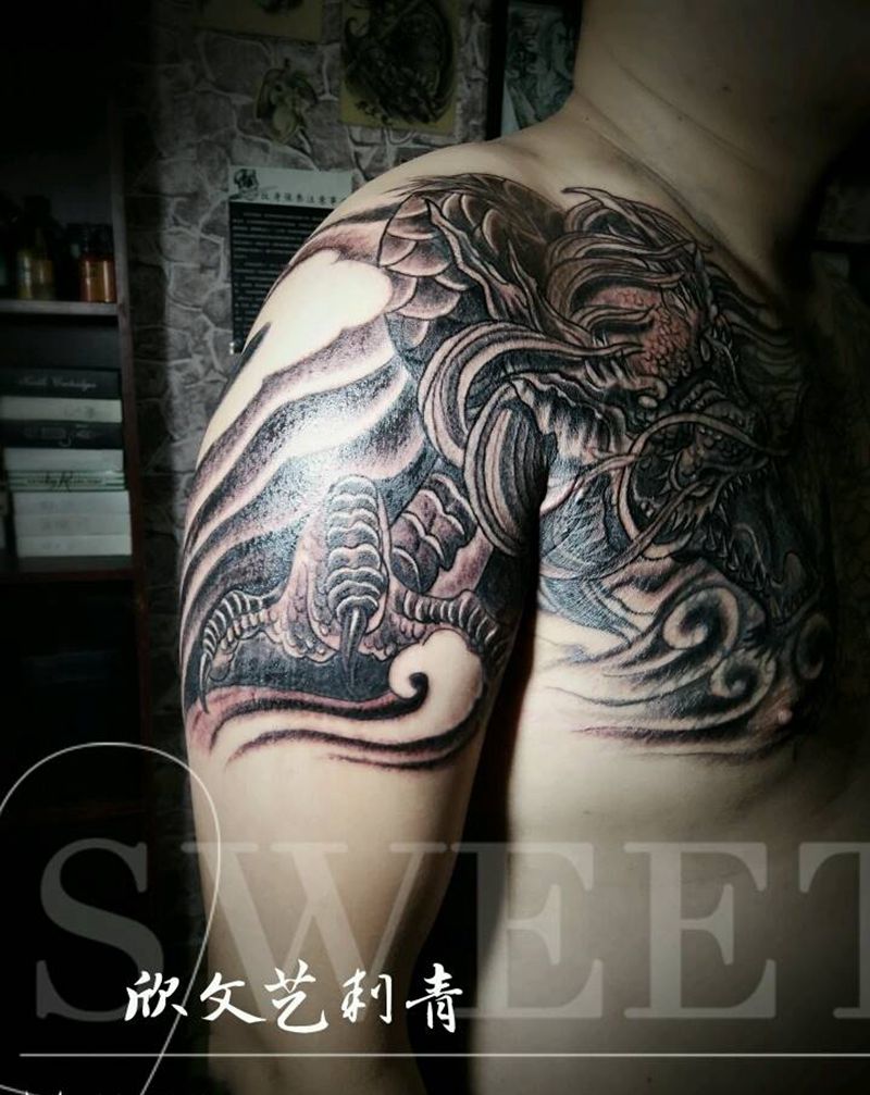 • 纹身吧推荐的披肩图腾半胛纹身图案作品展示
