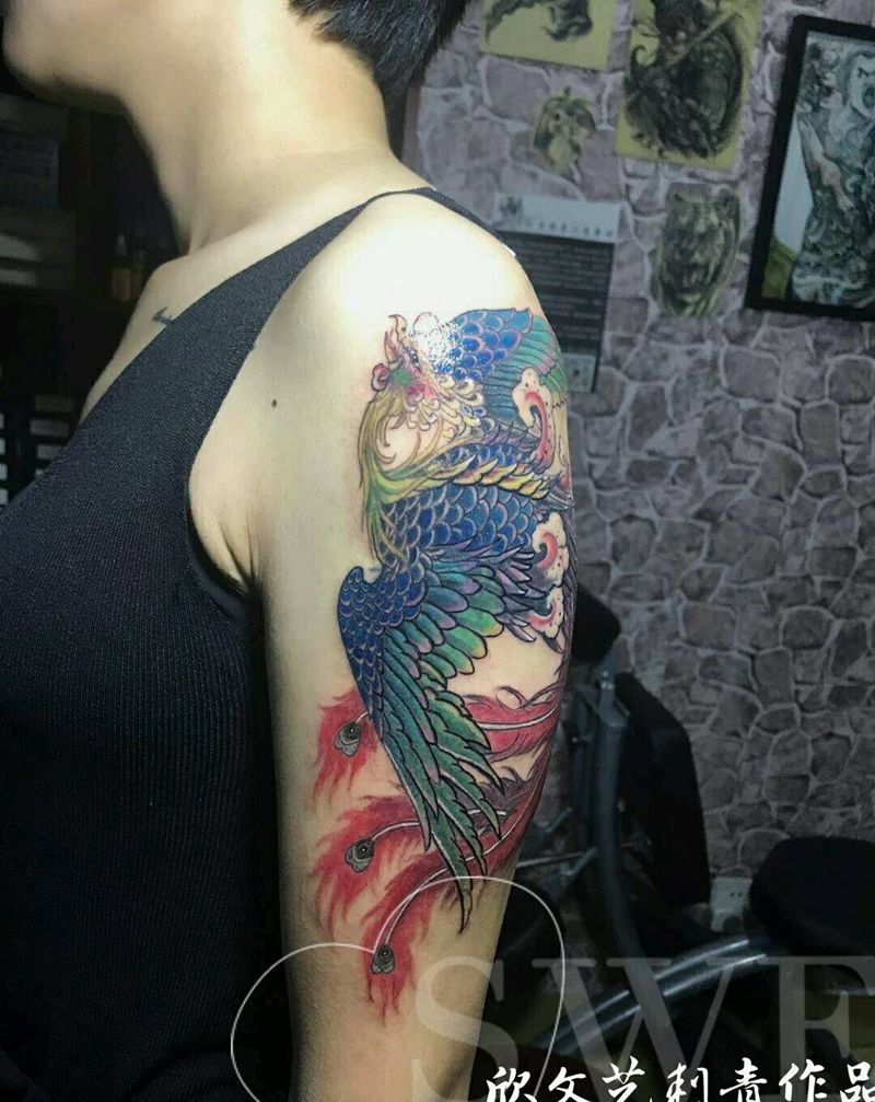 凤凰于飞(图腾遮盖)《旺哥作》纹身图片_手臂传统习俗动物宗教成品手稿纹身图案