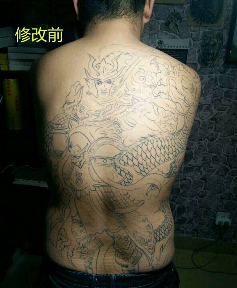 黑灰满背纹身图案