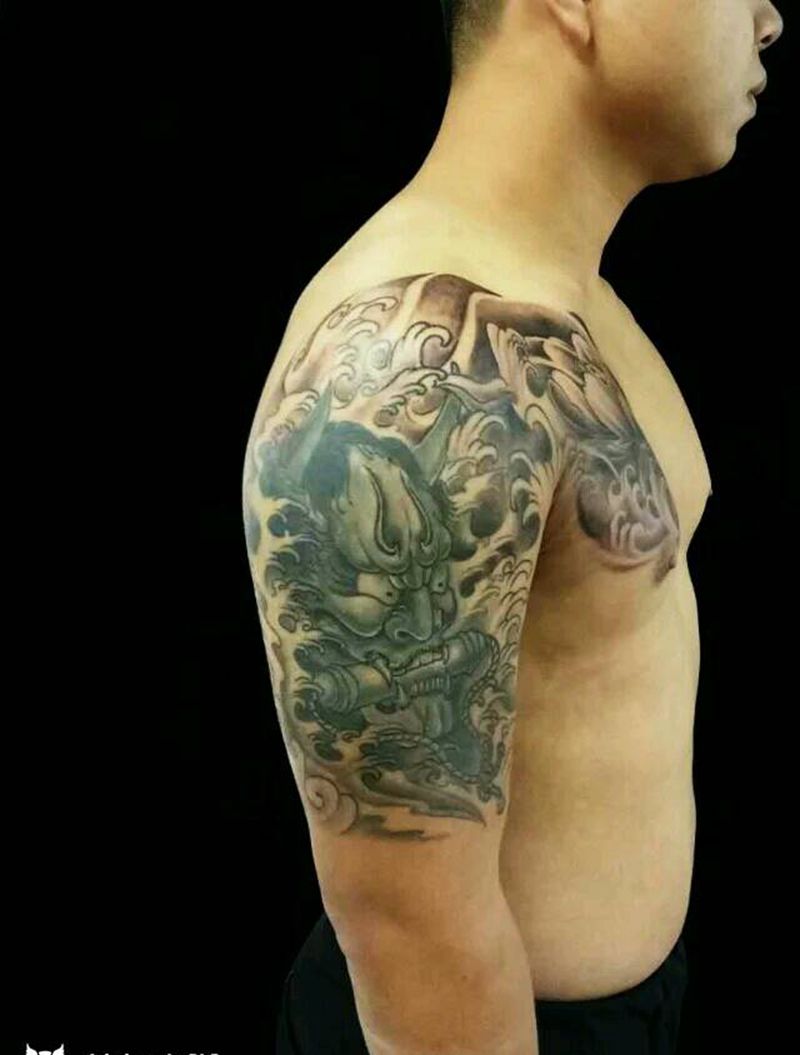 黑灰满背纹身图案