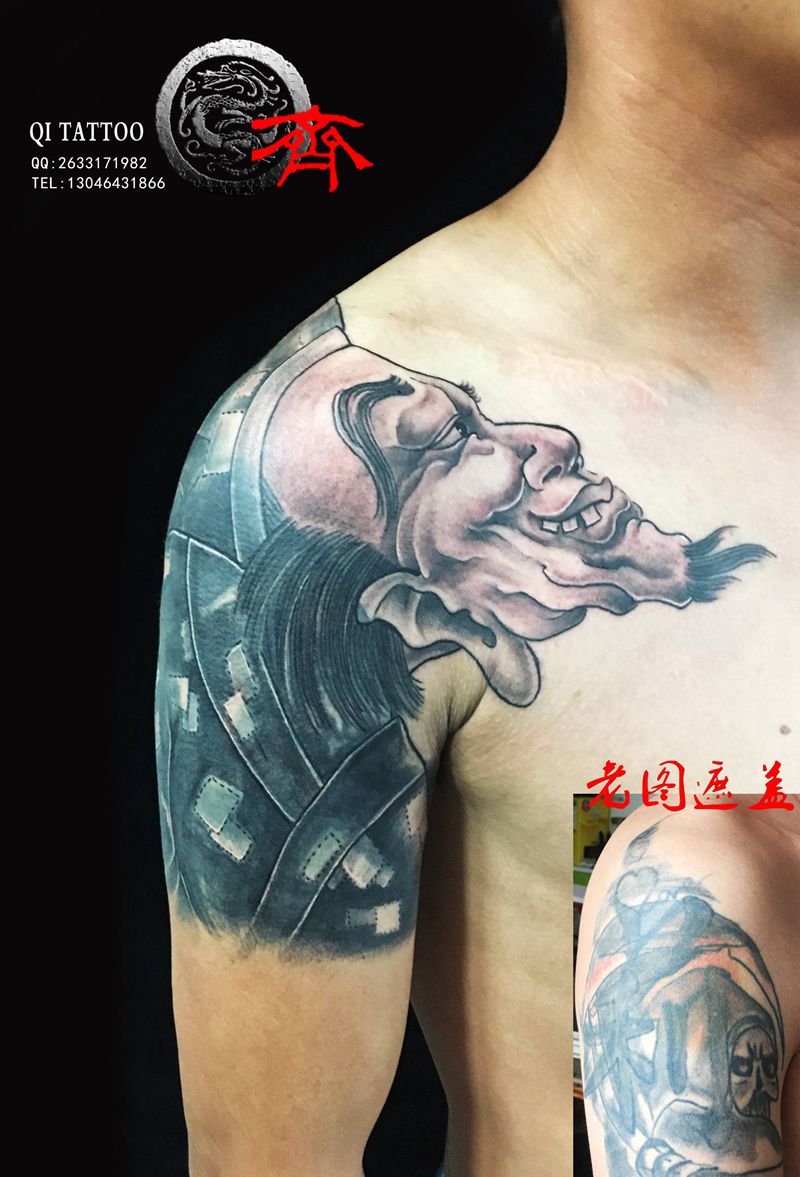 黑灰满背纹身图案