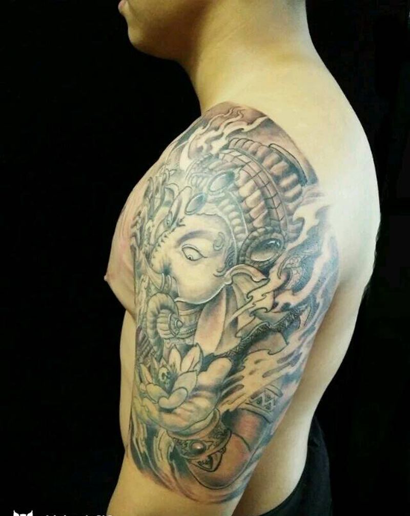 当前位置: 首页 >山东省威海市纹身店-齐刺青 工作室纹身图案>大臂象神纹身图片