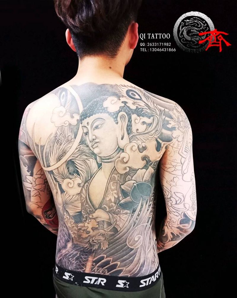 当前位置: 首页 >山东省威海市纹身店-齐刺青 工作室纹身图案>满背佛像纹身图片