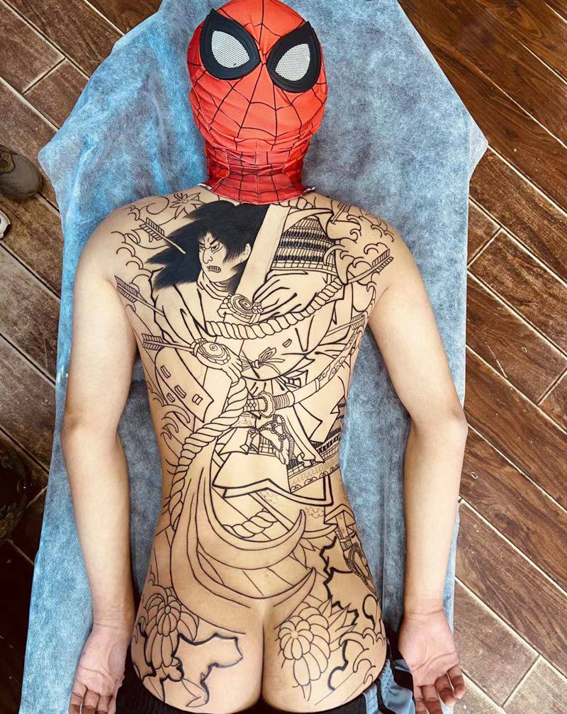 • 黑灰满背纹身图案