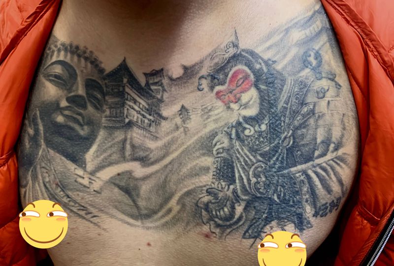 修改佛祖和悟空纹身图片_胸部腹部新传统老传统佛祖,悟空纹身图案