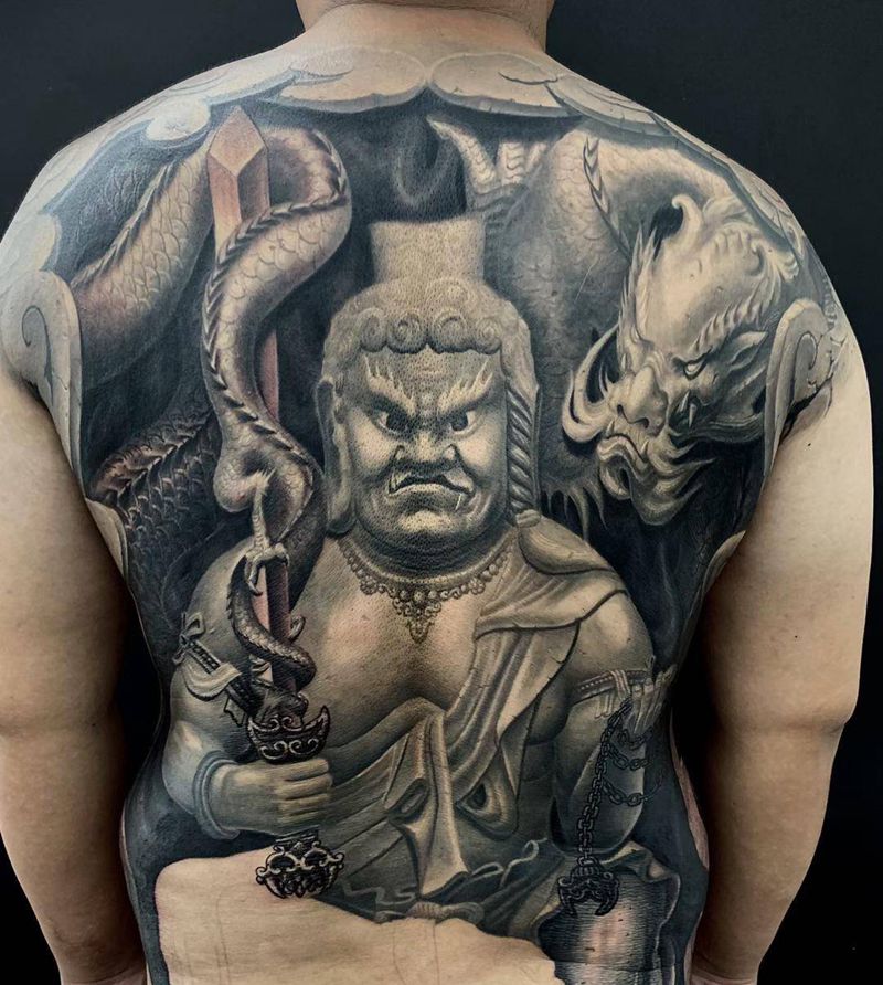 黑灰满背纹身图案