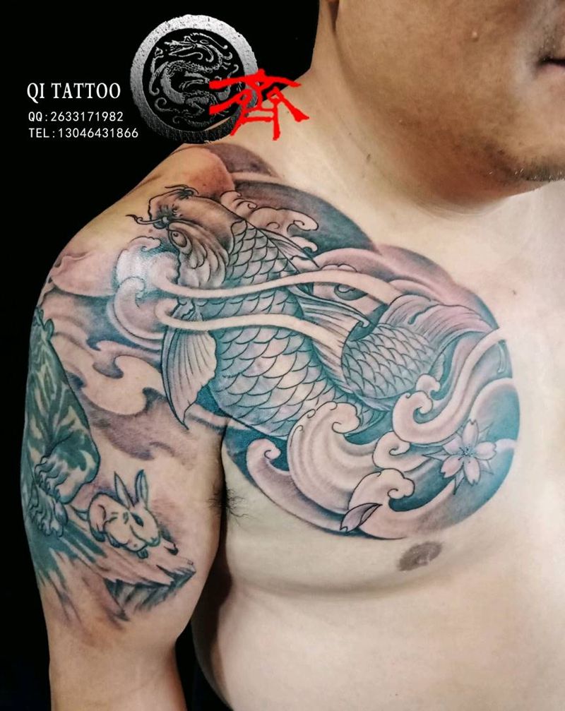 当前位置: 首页 >山东省威海市纹身店-齐刺青 工作室纹身图案>胸口 鲤鱼纹身图片_胸部新传统纹身图案