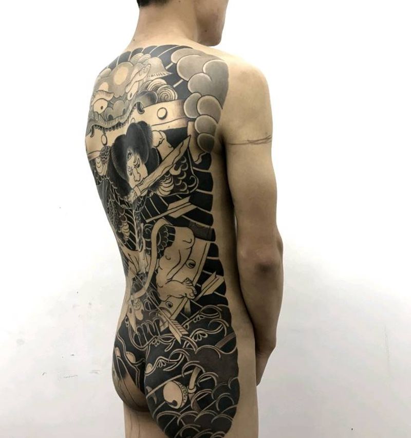 黑灰满背纹身图案