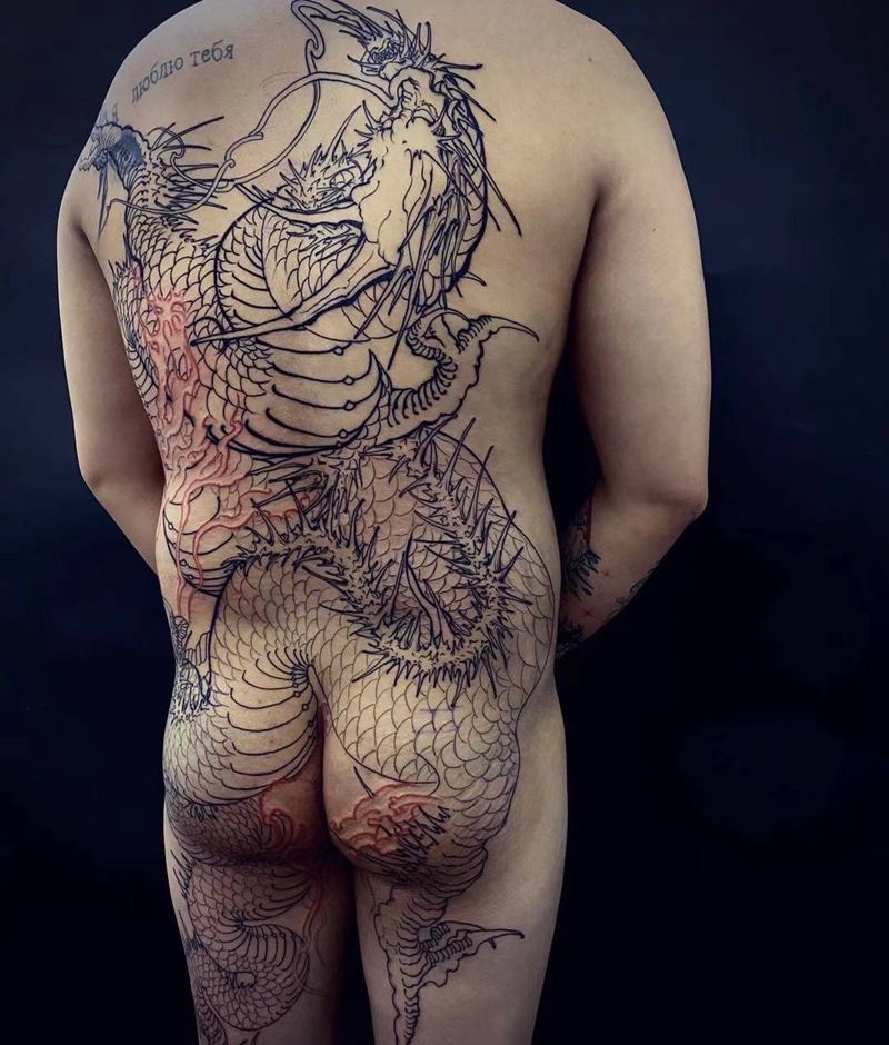 当前位置: 首页 >山东省济宁市纹身店-山东赤焰堂纹身纹身图案>蛟龙纹身图片_臀部背部新传统老传统蛟龙之勾线纹身图案