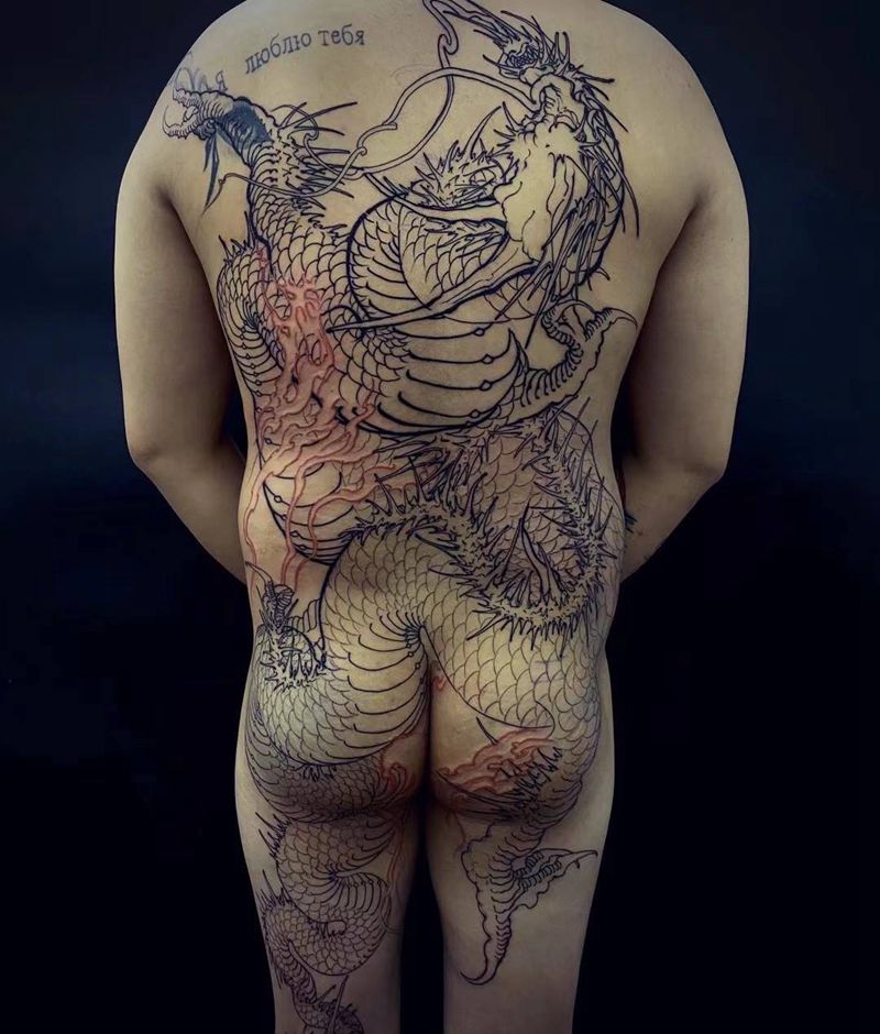 当前位置: 首页 >山东省济宁市纹身店-山东赤焰堂纹身纹身图案>蛟龙纹身图片_臀部背部新传统老传统蛟龙之勾线纹身图案