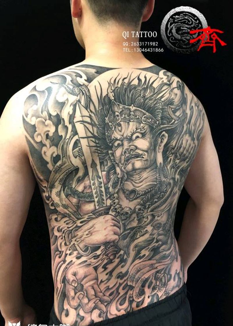 黑灰满背纹身图案