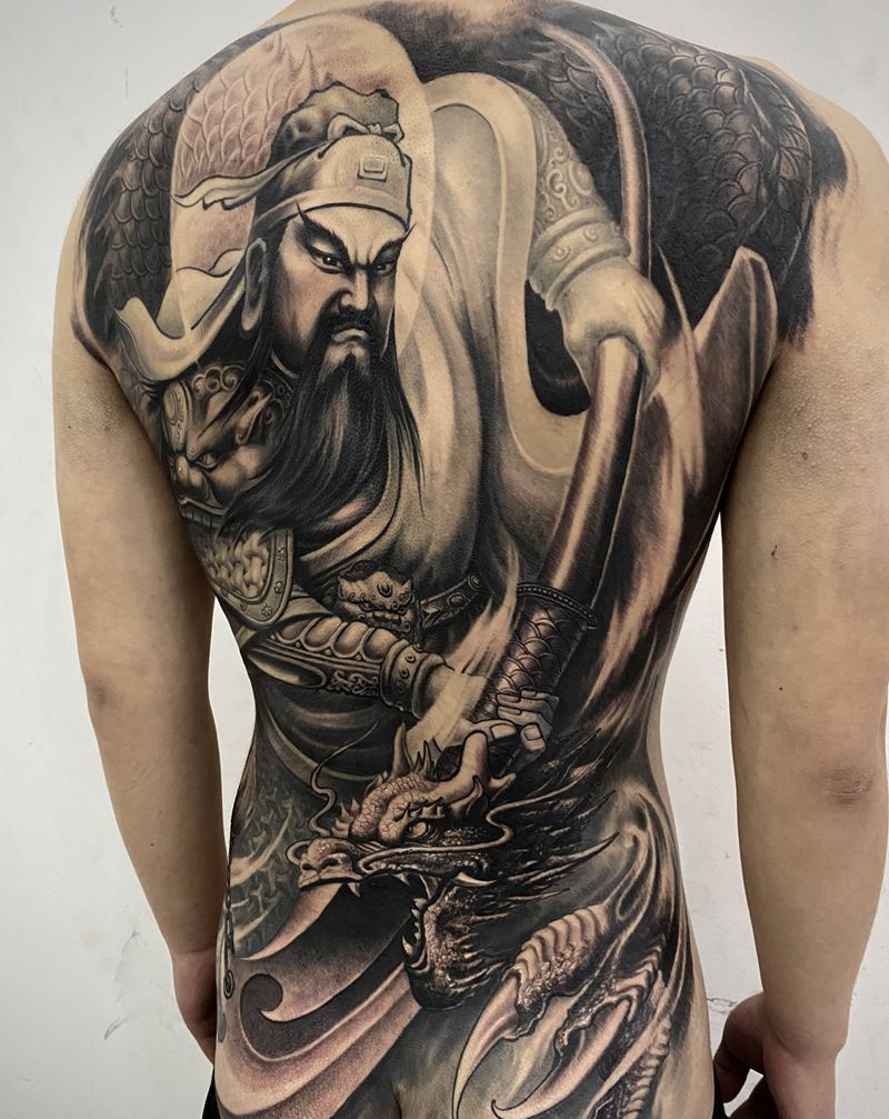 关公纹身图片_背部臀部老传统新传统关公纹身图案