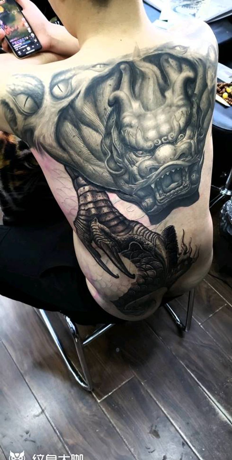 当前位置: 首页 >山东省济宁市纹身店-山东赤焰堂纹身纹身图案>神龙壁纹身图片_背部老传统石雕龙纹身图案