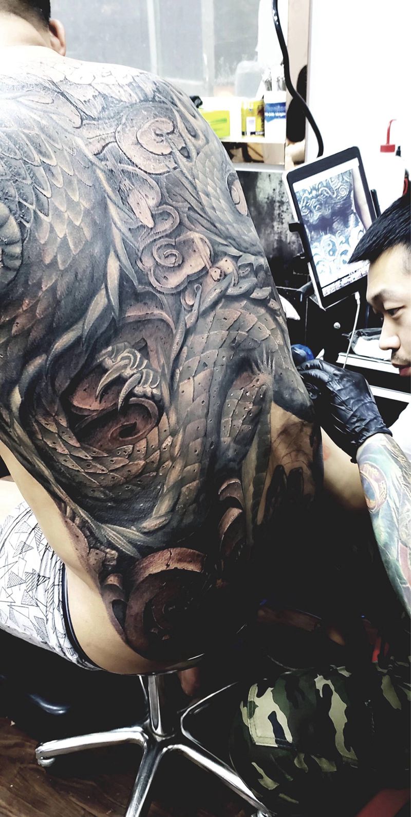 • 黑灰满背纹身图案
