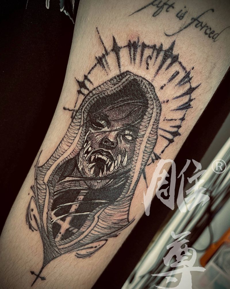 当前位置: 首页 >山东省泰安市纹身店-劫月刺青纹身图案>暗黑纹身图片_手臂纹身图案